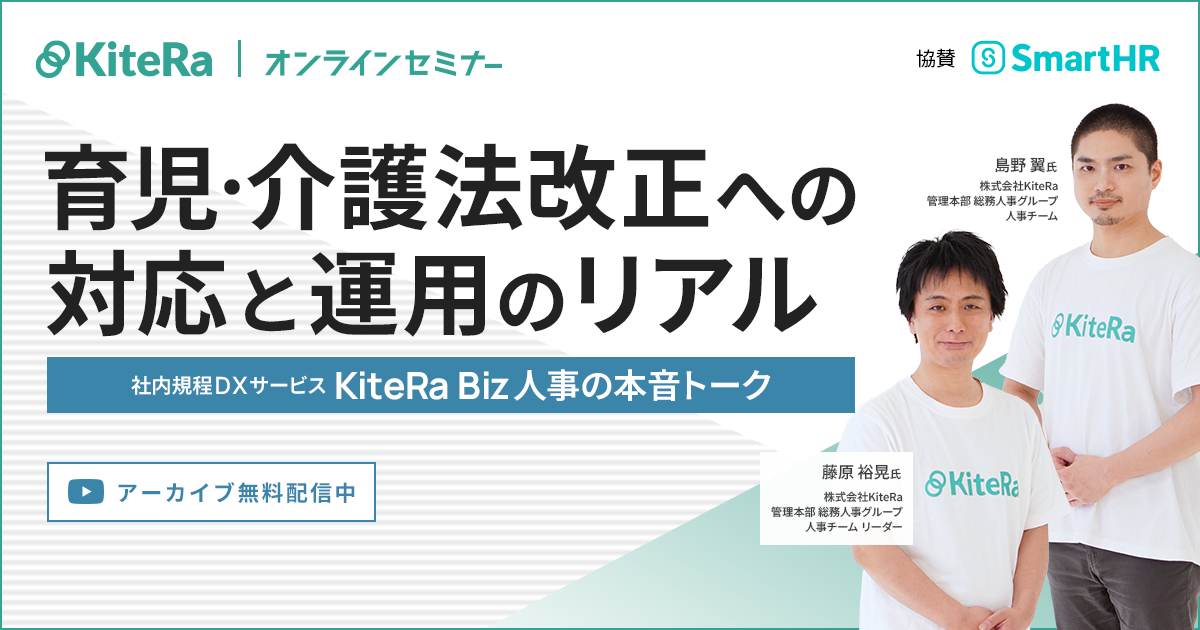 育児・介護法改正への対応と運用のリアル~社内規程DXサービス「KiteRa Biz」人事の本音トーク~